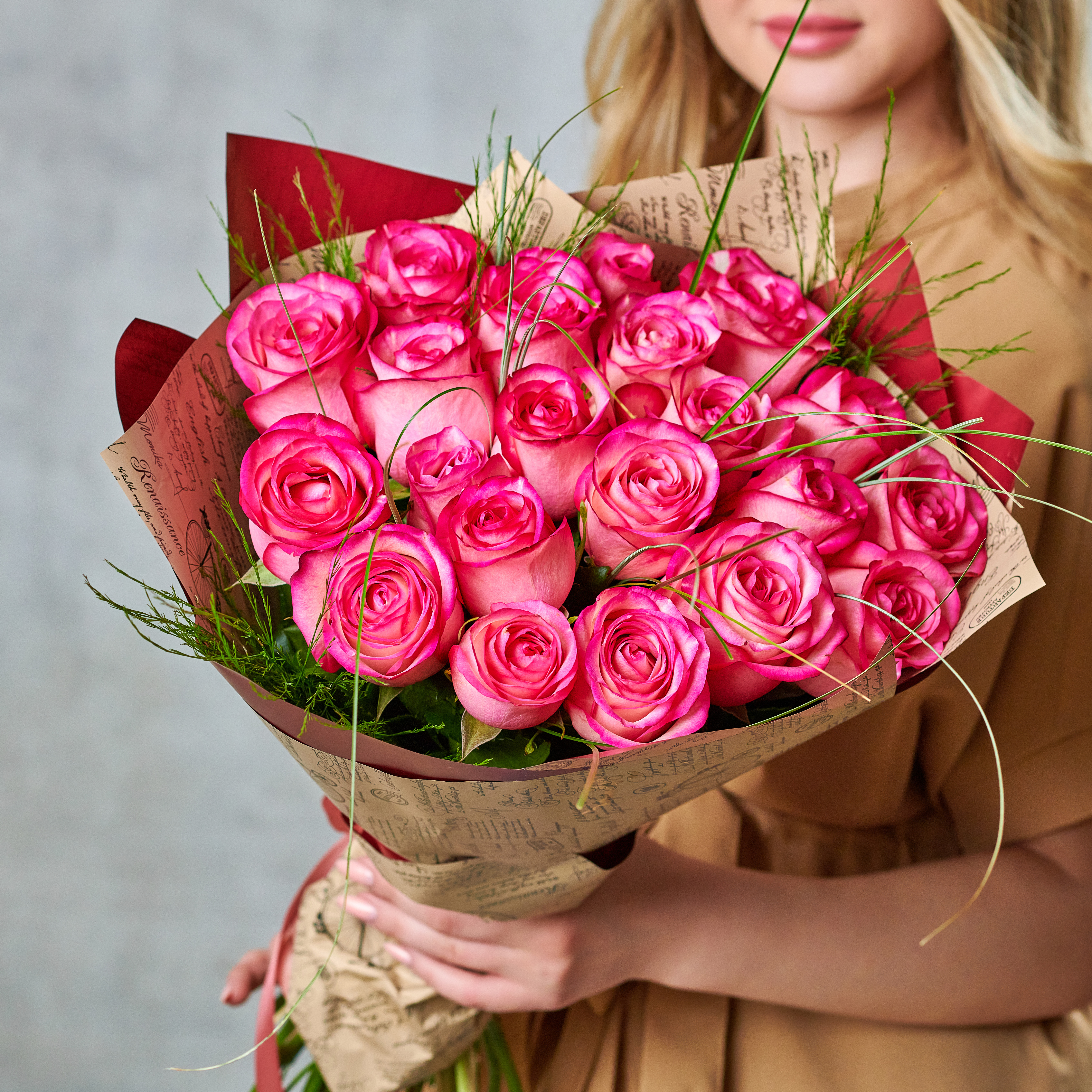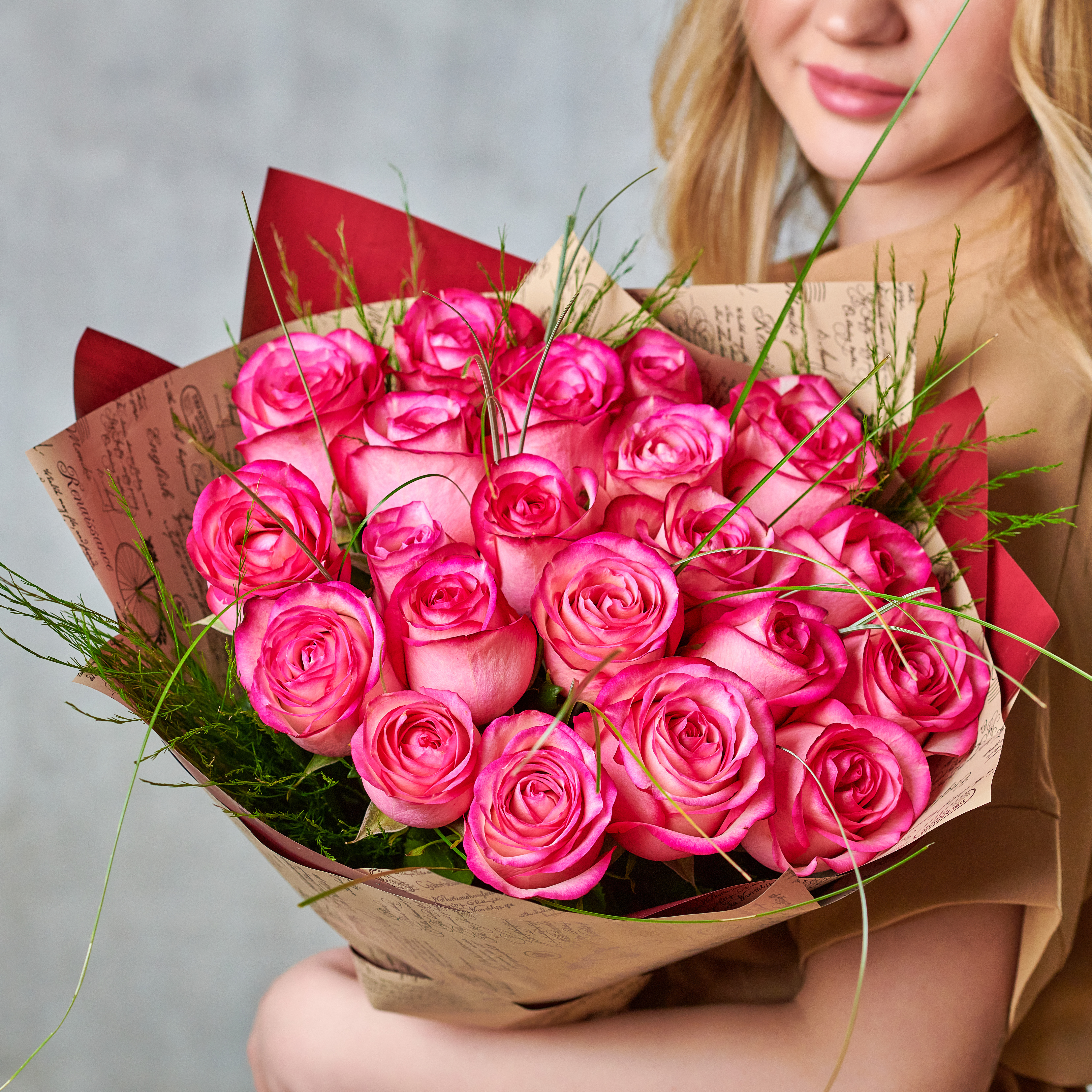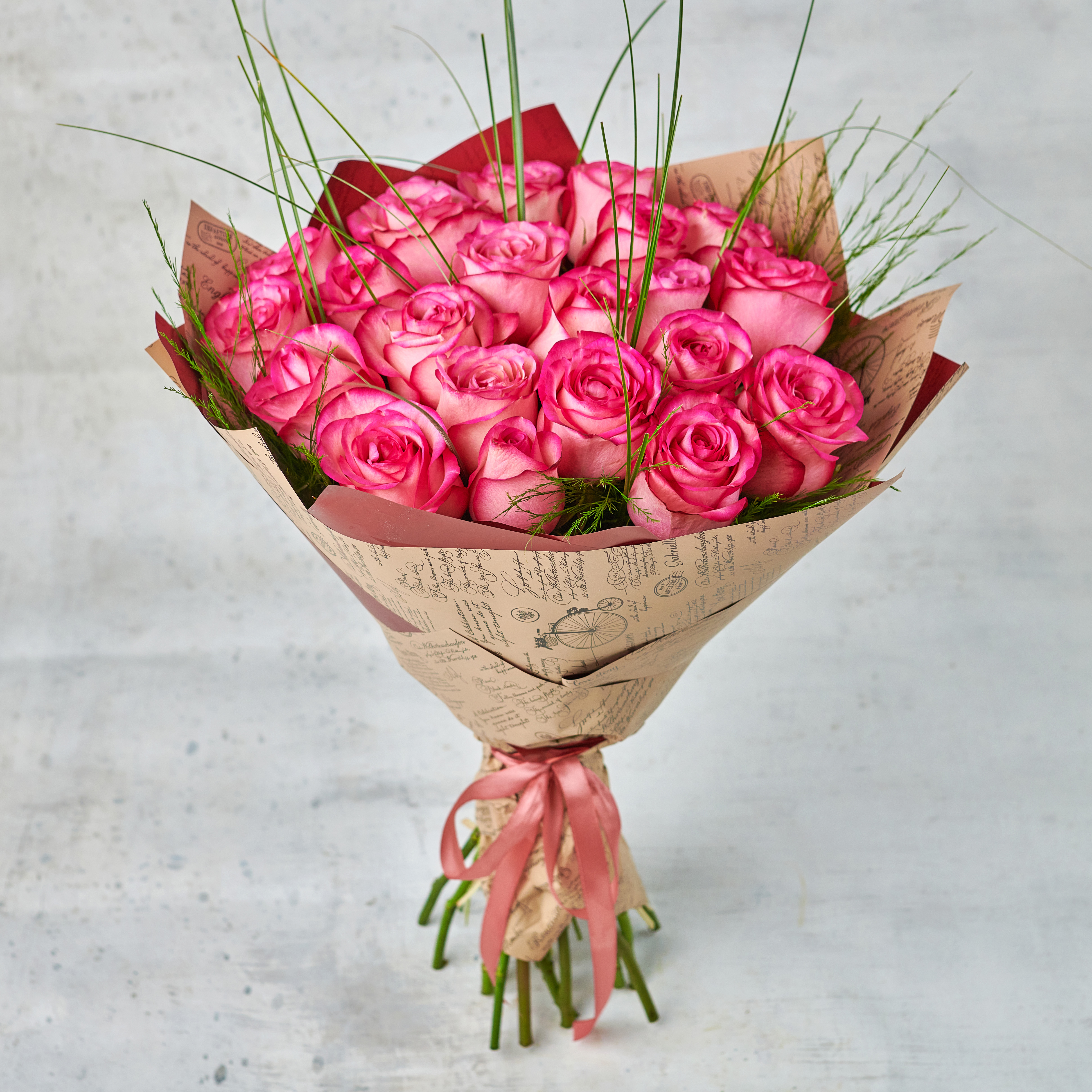 Букет из 25 роз с зеленью