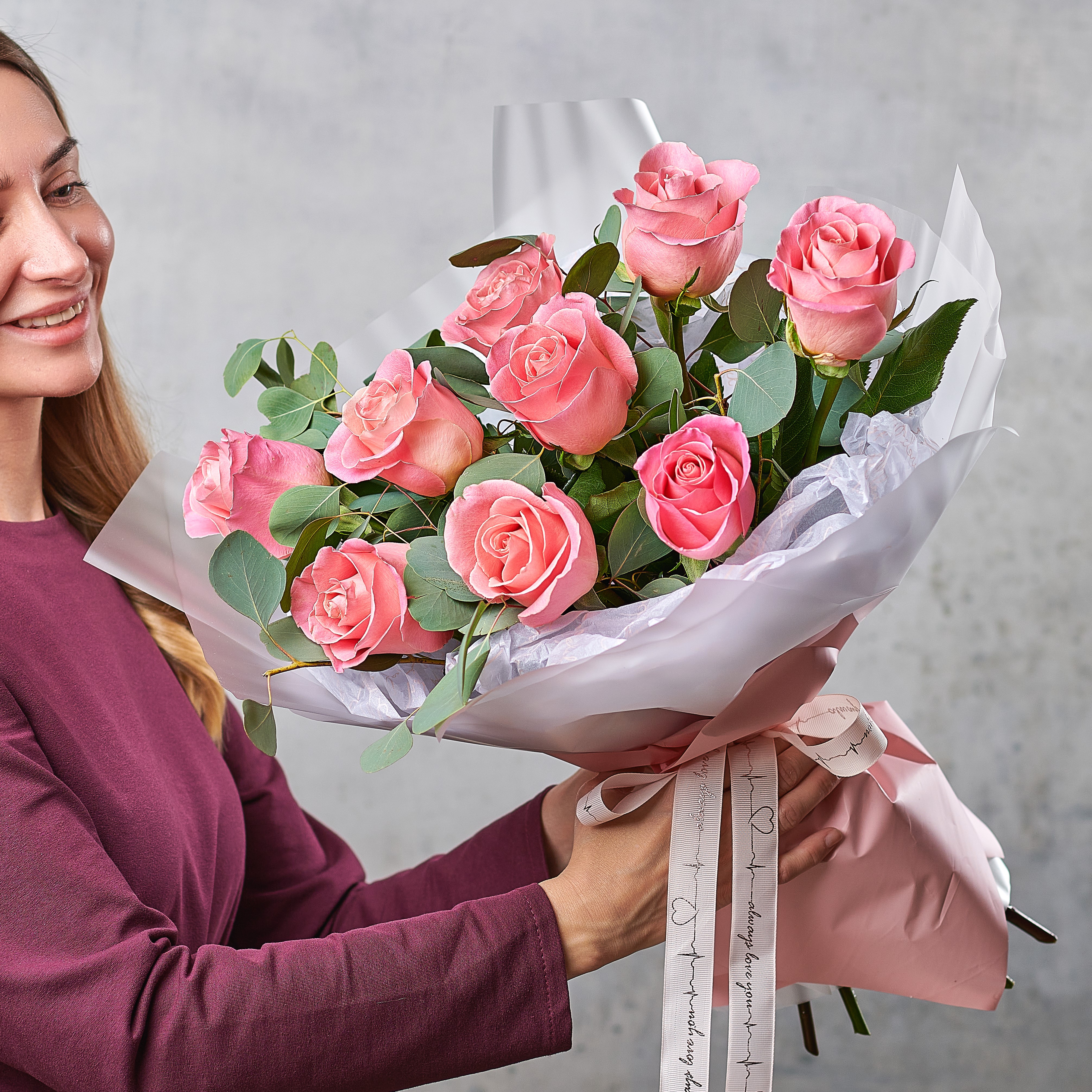Букет "Топаз" обладает невероятным шармом, ведь в нем можно найти все: классическое сочетание, душистый эвкалипт и великолепные, всеми любимые розовые розы. Букет, покоривший сердца наших клиентов. Возможны небольшие изменения элементов. Общий вид и композиция букета будет сохранена.