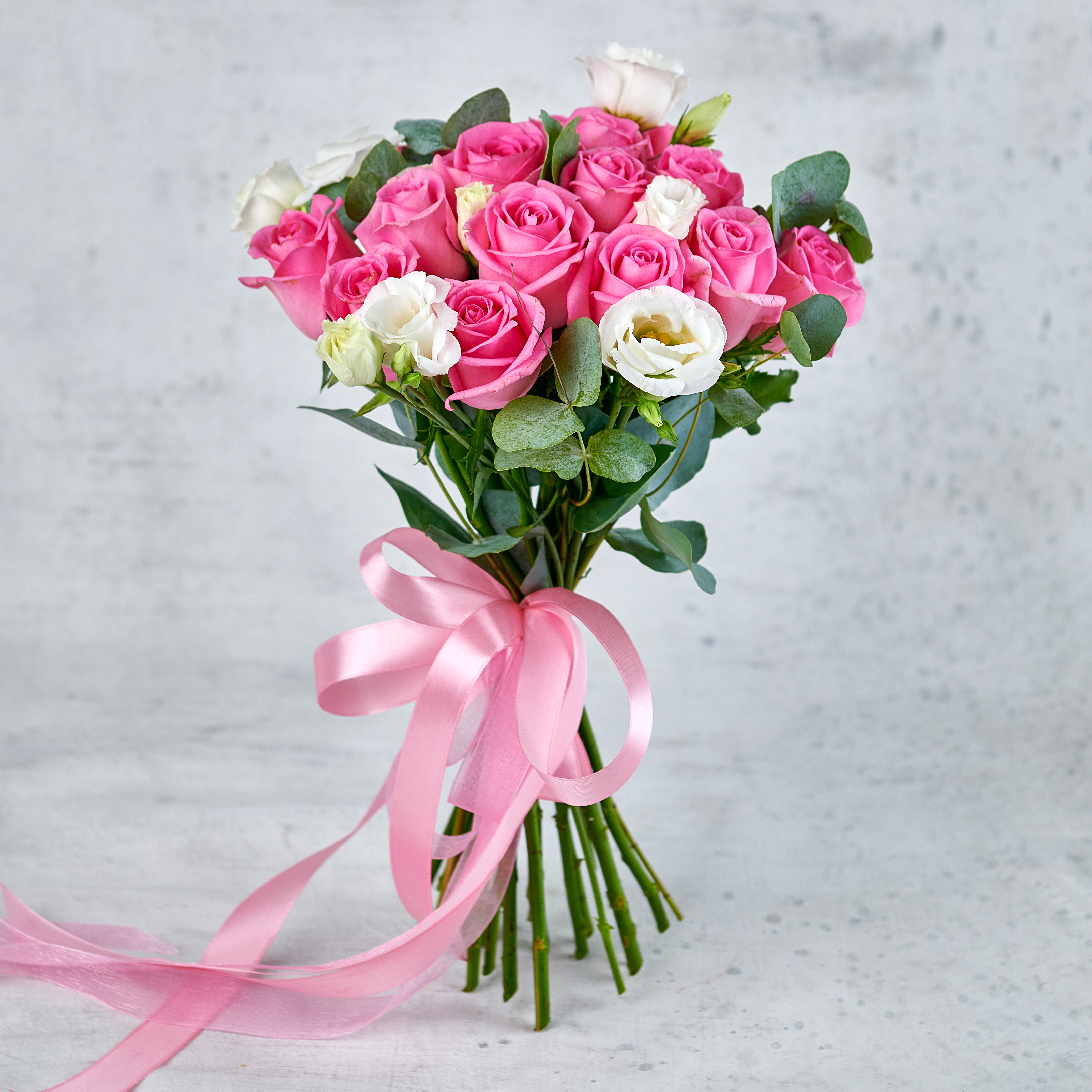 Нежные, трепетные оттенки подчеркнут красоту юности и нежность трогательных мгновений. Особенные букеты для незабываемых дней. Классический состав и благородная зелень - идеален для торжеств. Возможны небольшие изменения элементов. Общий вид и композиция букета будет сохранена.