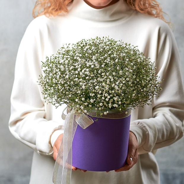 Настоящий хит цветочных подарков - снежная гипсофила. Такой подарок точно вызовет восторг и будет радовать получателя очень долго, так как гипсофила сохраняет свой вид даже после высыхания, нередко используется в качестве сухоцвета и декоративного элемента. Возможны небольшие изменения элементов. Общий вид и композиция букета будет сохранена.