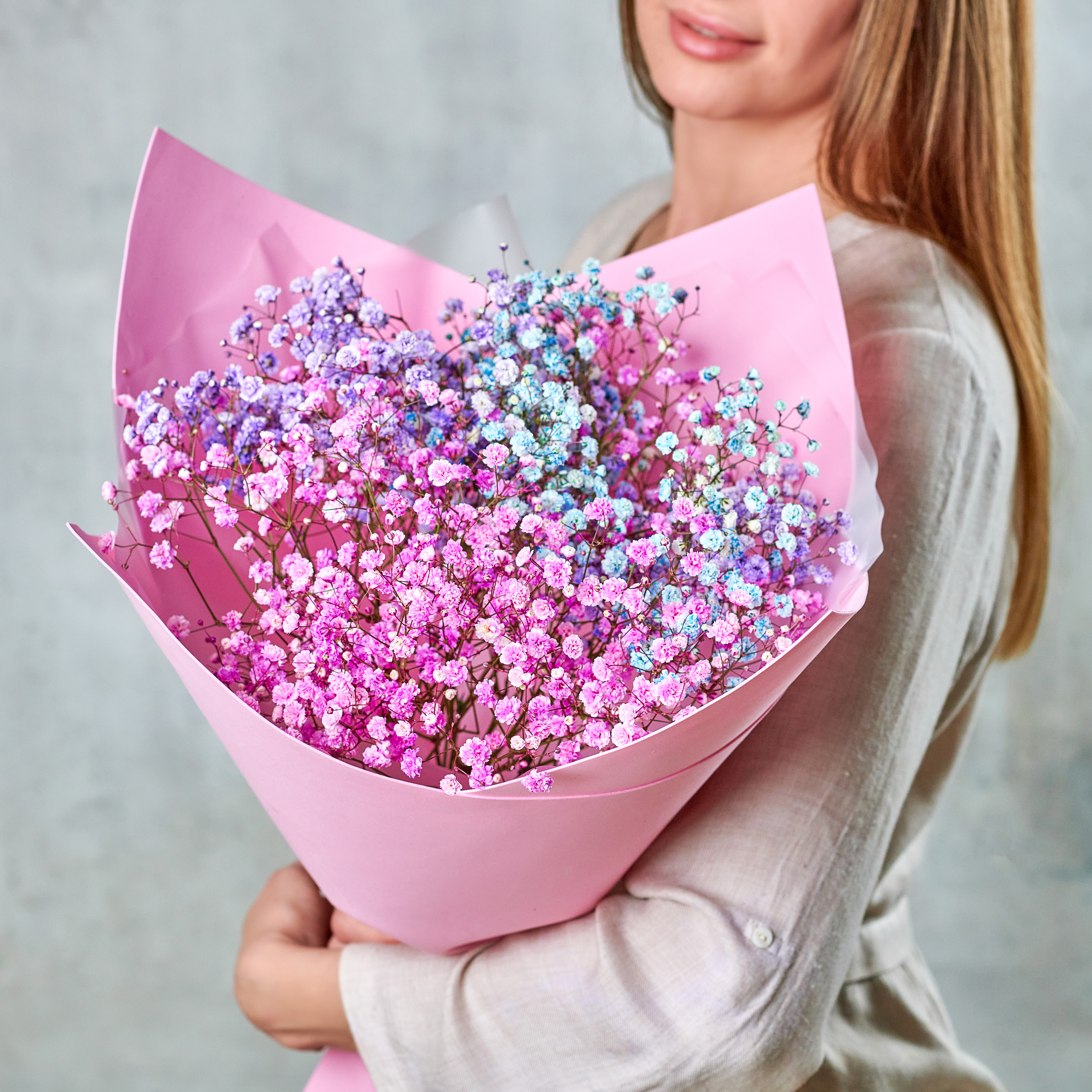 Цветочный рейв из стойкой гипсофилы в лучезарной упаковке. Идеальный вариант для ценителей стойких подарков. Гипсофила продолжит радовать получателя даже после высыхания, сохраняя форму в качестве сухоцвета. Возможны небольшие изменения элементов. Общий вид и композиция букета будет сохранена.