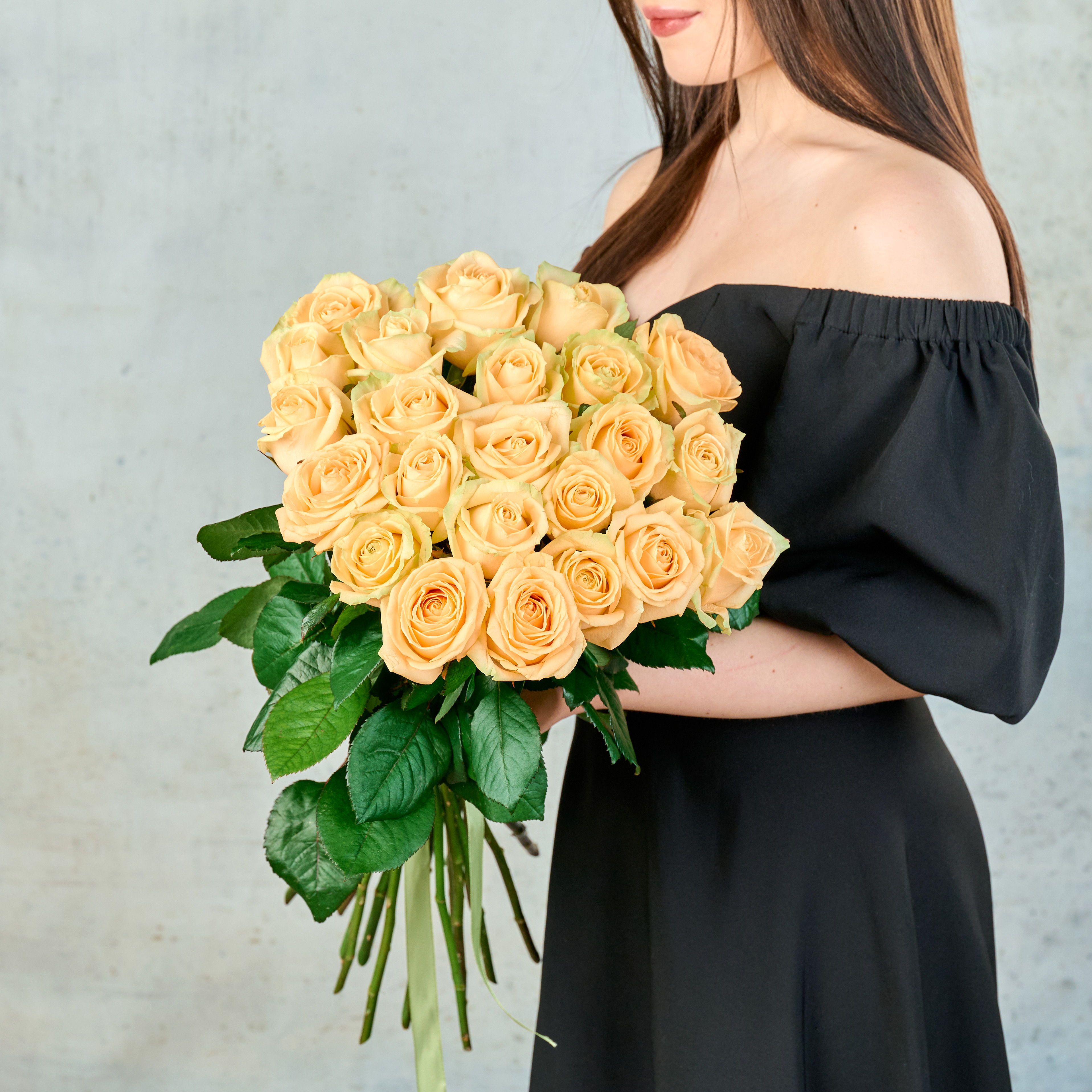 Букет из 25 кремовых Российских роз