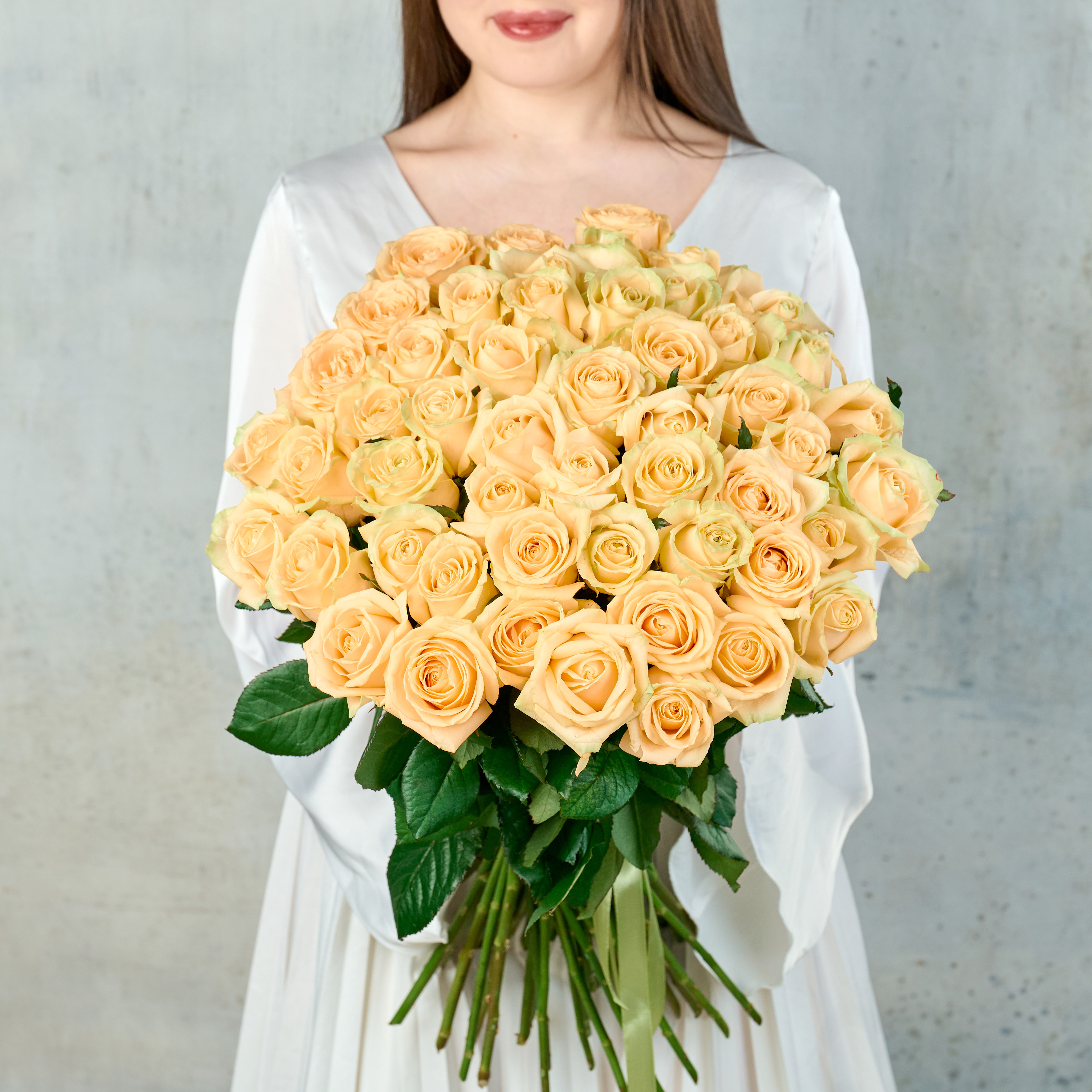 Букет из 51 кремовой Российской розы